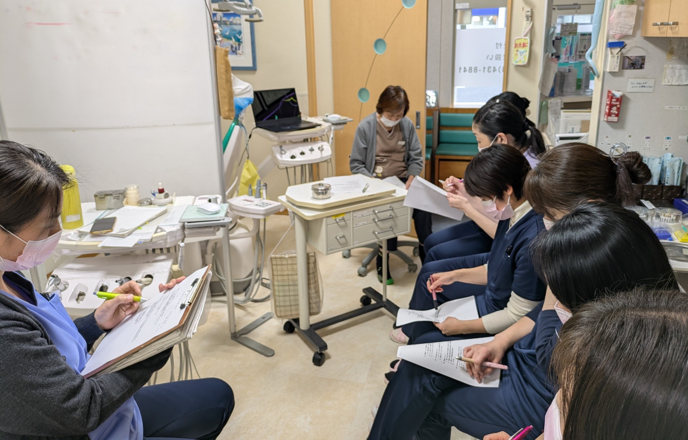 ミーティングでは皆から意見を出してもらって、リコールの場合の衛生士さんの時間枠(45分や神戸市検診なら処置含めて60分)といった内容を吟味していきました。
